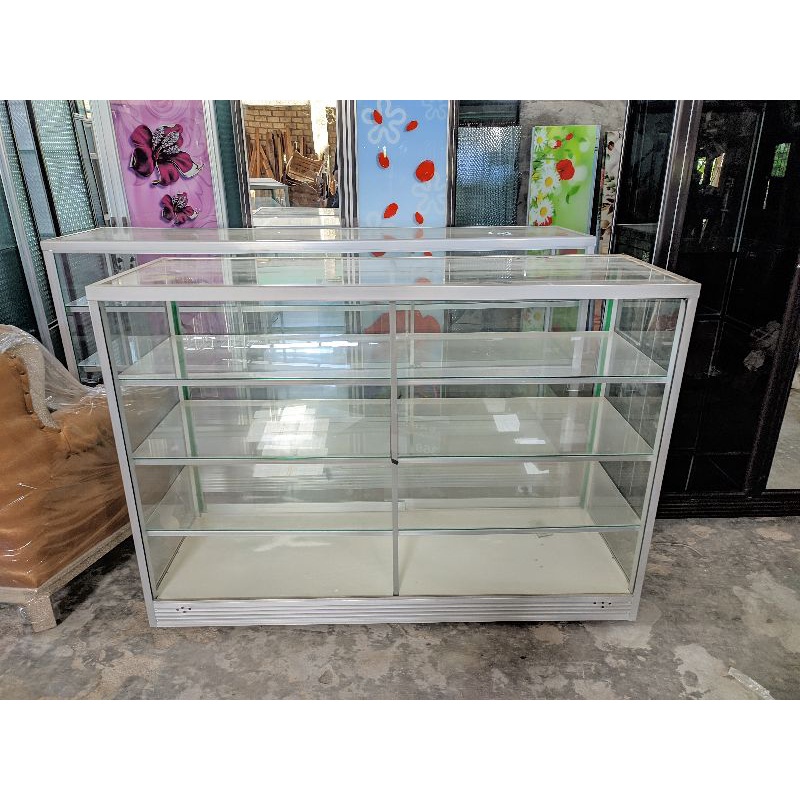 ETALASE UKURAN 1 METER RAK JUALAN TEMPAT BARANG DAGANGAN COUNTER LEMARI KACA CERMIN RAK BAJU ALMINI ALUMINIUM BISA REQUE