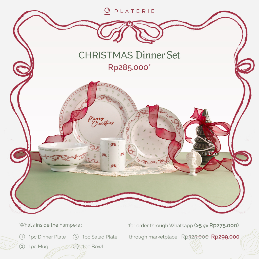 PLATERIE CHRISTMAS HAMPERS SET Red Ribbon Hampers 4pcs Set Hadiah Natal Ceramics Tableware w/ Box