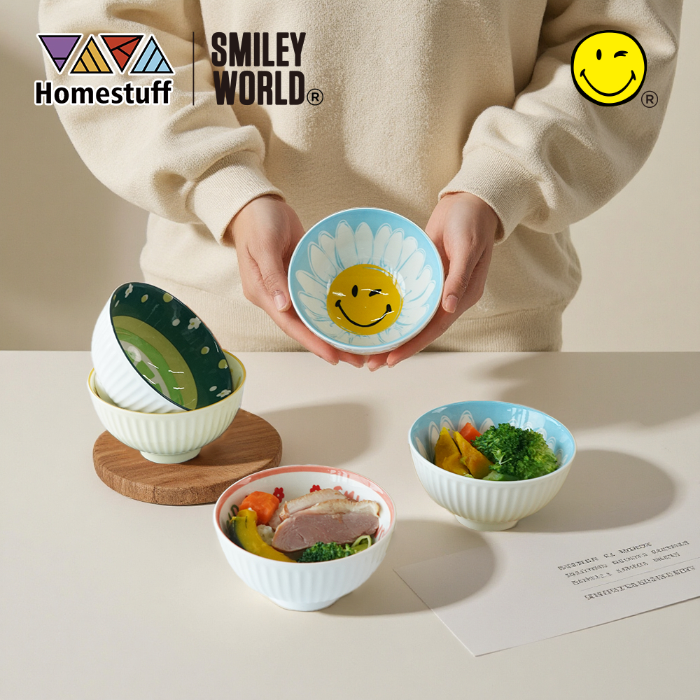 BUY 10 GET 5%[SNI] HOMESTUFF x SmileyWorld Hampers Mangkok Set SmileyWorld/Motif lucu/Japanesse Style/Garansi
