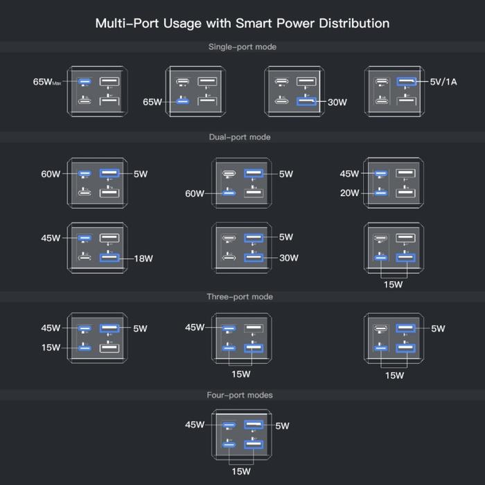 KIIP C19E CHARGER ADAPTOR GAN6 65W PD QC 4PORT 2 USB A - 2 USB TYPE C GAN 6 SUPER FAST CHARGING