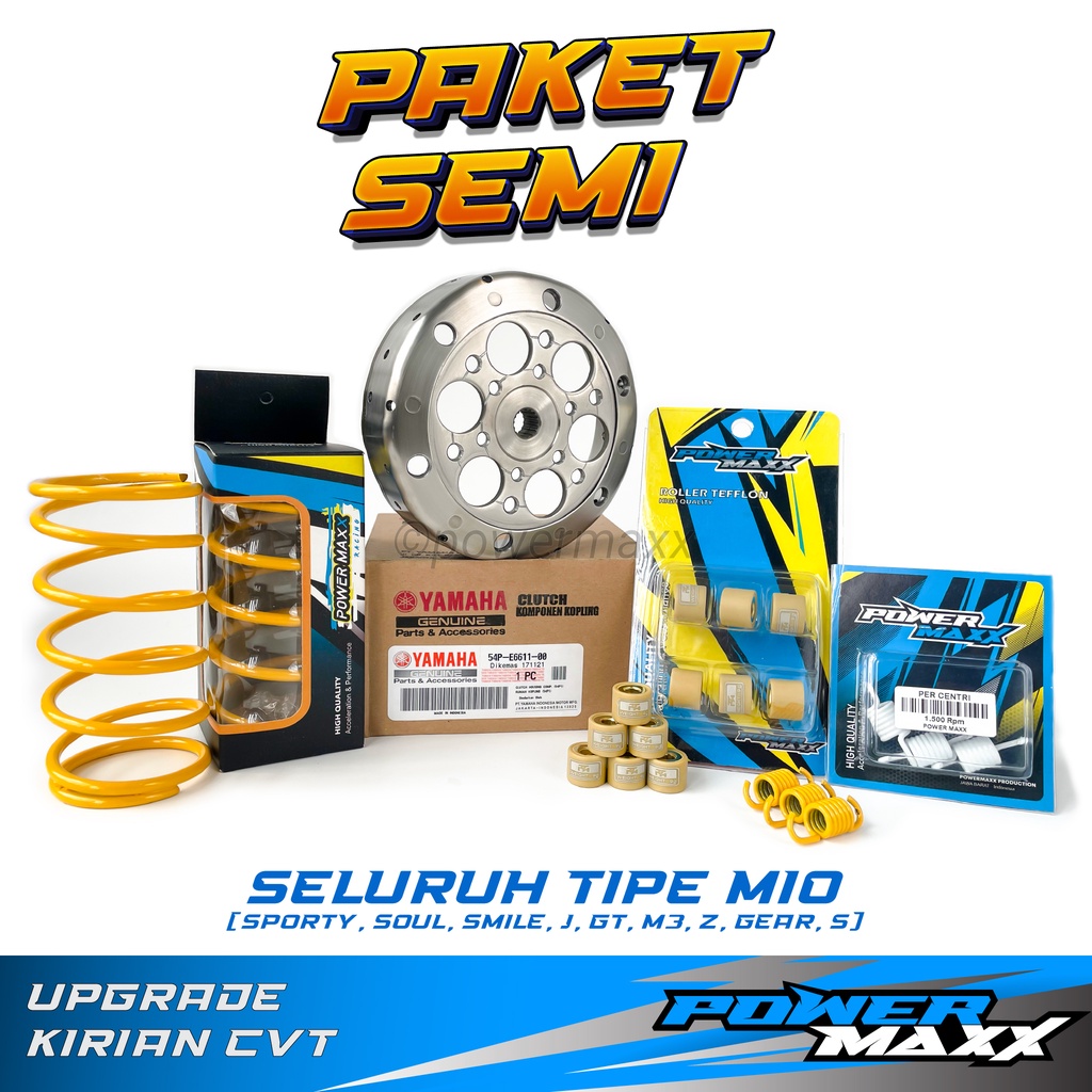 PAKET SEMI UPGRADE KIRIAN CVT mio j m3 smile soul z s gear gt 115 125 karburator karbu fi racing - Mangkok Kampas Ganda + Per CVT + Roller + Per Kampas Ganda - powermaxx power max powermax