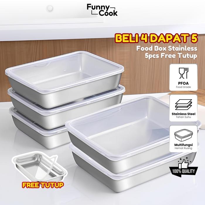 [DAPET 5PCS] FUNNYCOOK FOOD BOX 5PCS STAINLESS STEEL TEMPAT MENYIMPAN MAKANAN FOOD CONTAINER WADAH SAYURAN STAINLESS MULTIFUNGSI - BISA UNTUK OVEN DAN MICROWAVE DENGAN TUTUP KITCHENWARE STEEL