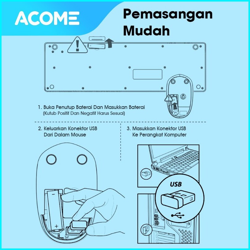 Acome Akm2000 Robot Km3500 Paket Keyboard Mouse Wireless Mini 1600 Dpi - Garansi Resmi 1 Tahun