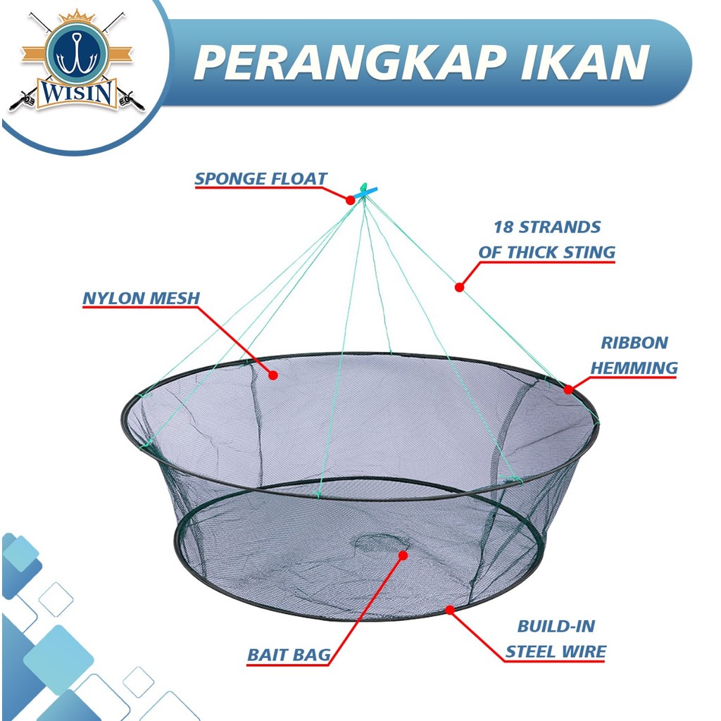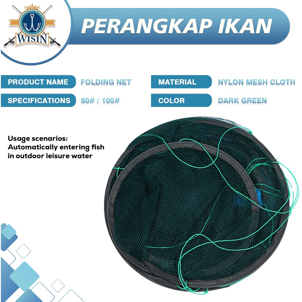 WISIN Jaring Perangkap Ikan Jaring Ikan bulat Ukuran 80cm-100cm Jaring jebakan Ikan/Jaring Pancing Ikan Kepiting Lobster Udang