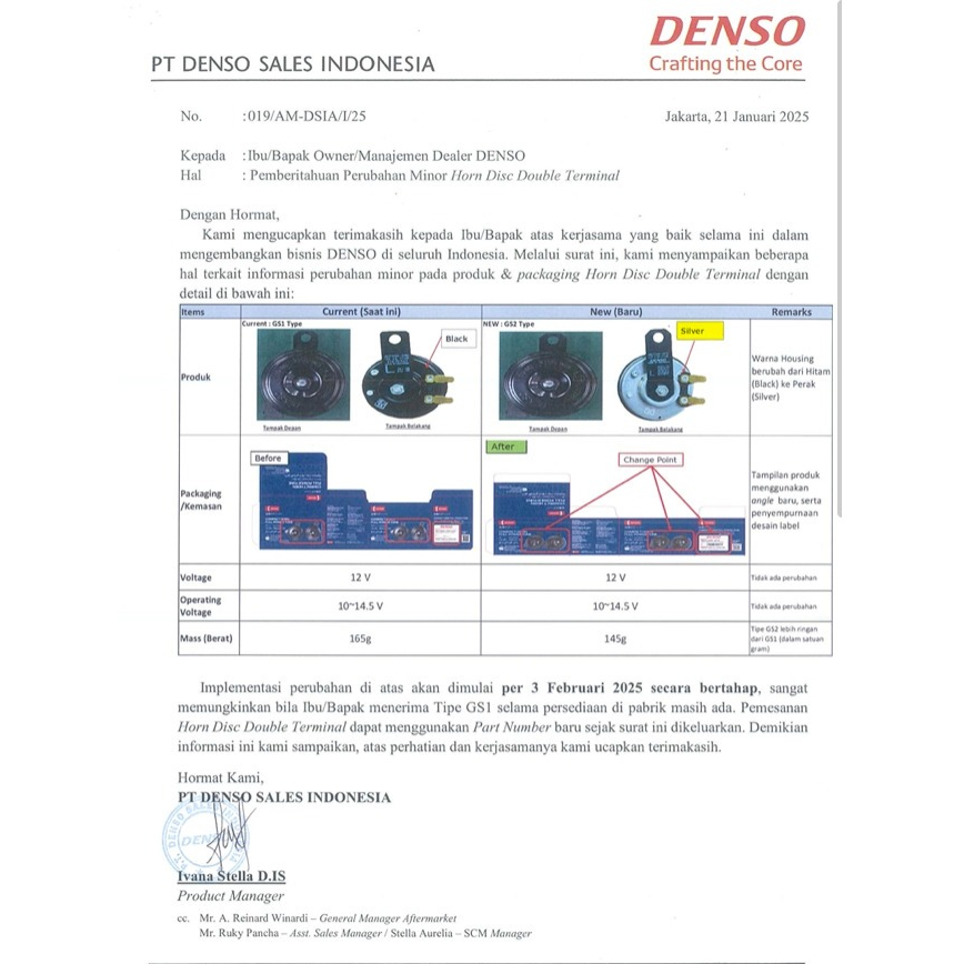DENSO SINGLE KLAKSON DISC UNIVERSAL 12V TINGGAL PASANG UNTUK SEMUA MOTOR TANPA RELAY 100 ASLI