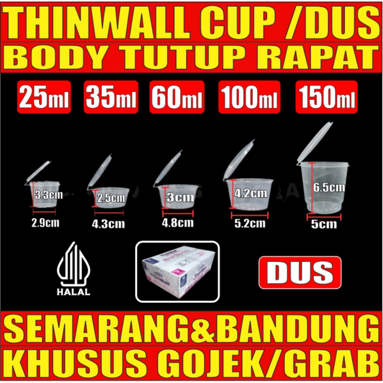 Thinwall Cup Tebal 7.2gr Rapat 25ml 35ml 60ml 100ml 150ml Dus Cup Sambel n Cup Puding Plastik GJK