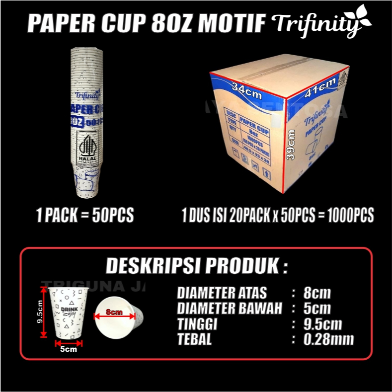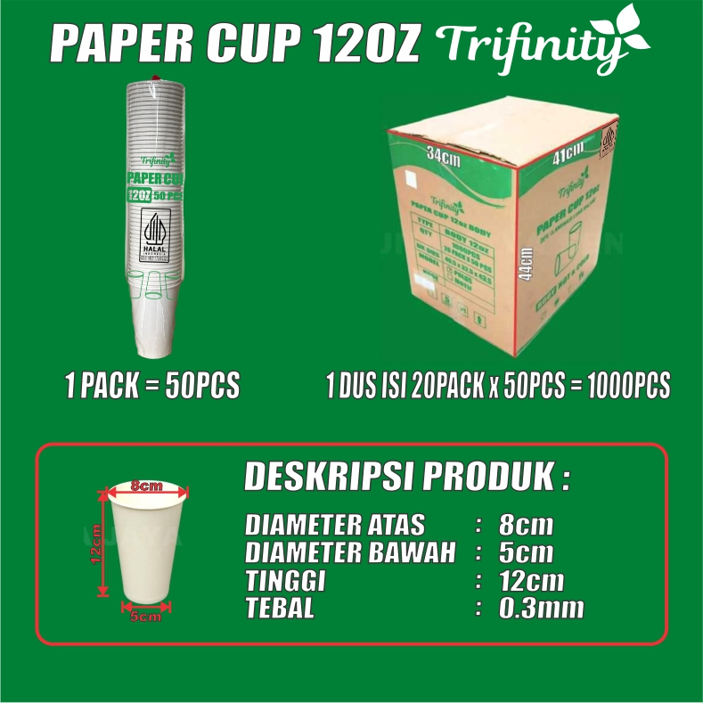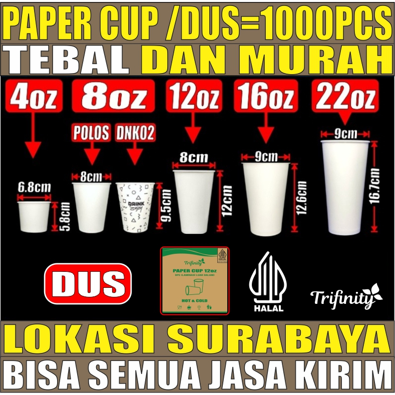 Paper Cup HALAL Tebal 4oz 120ml 8oz 240ml 12oz 360ml 16oz 480ml 22oz Dus Gelas Kertas Trifinity SBY