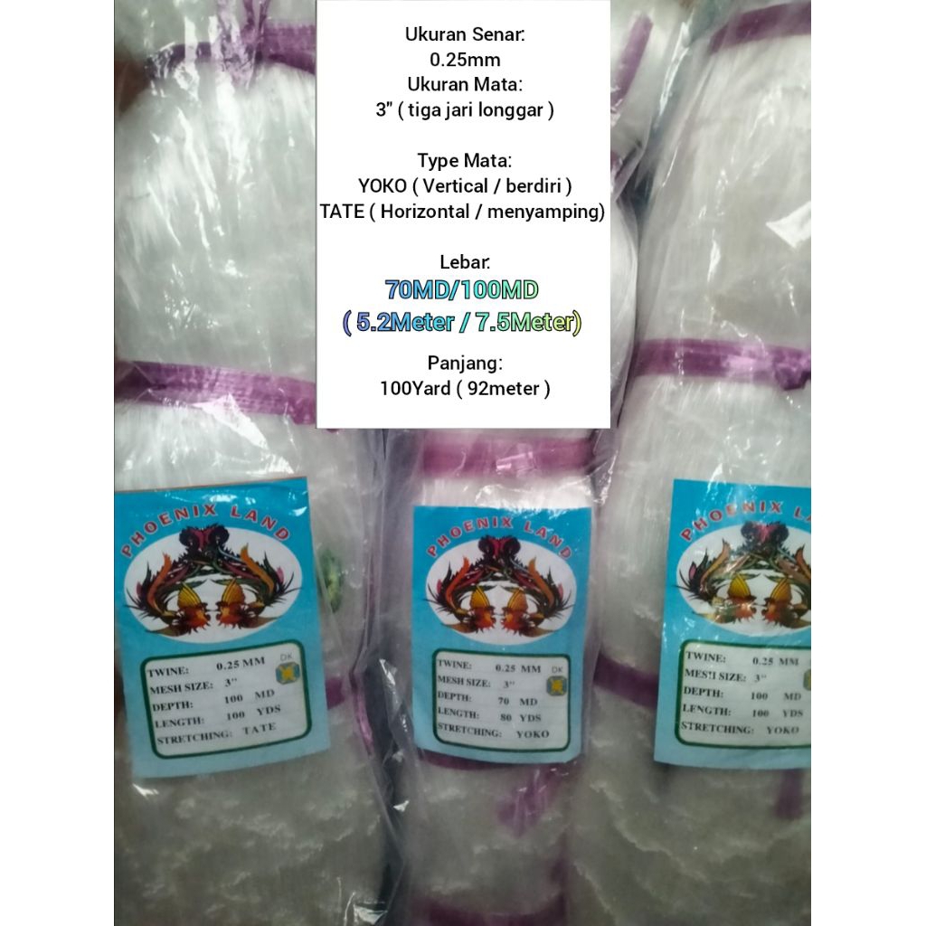 Jaring IKAN 0.25 MS 3" (PILIH UKURAN dan TYPE)