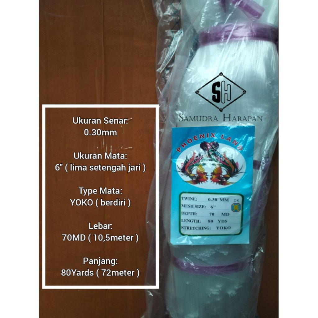 Jaring Ikan Senar 0.30mm 6" Yoko 70x80