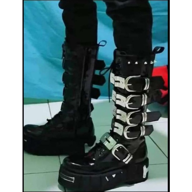 Sepatu Boots Kulit England Hitam Nyaman 5-6cm