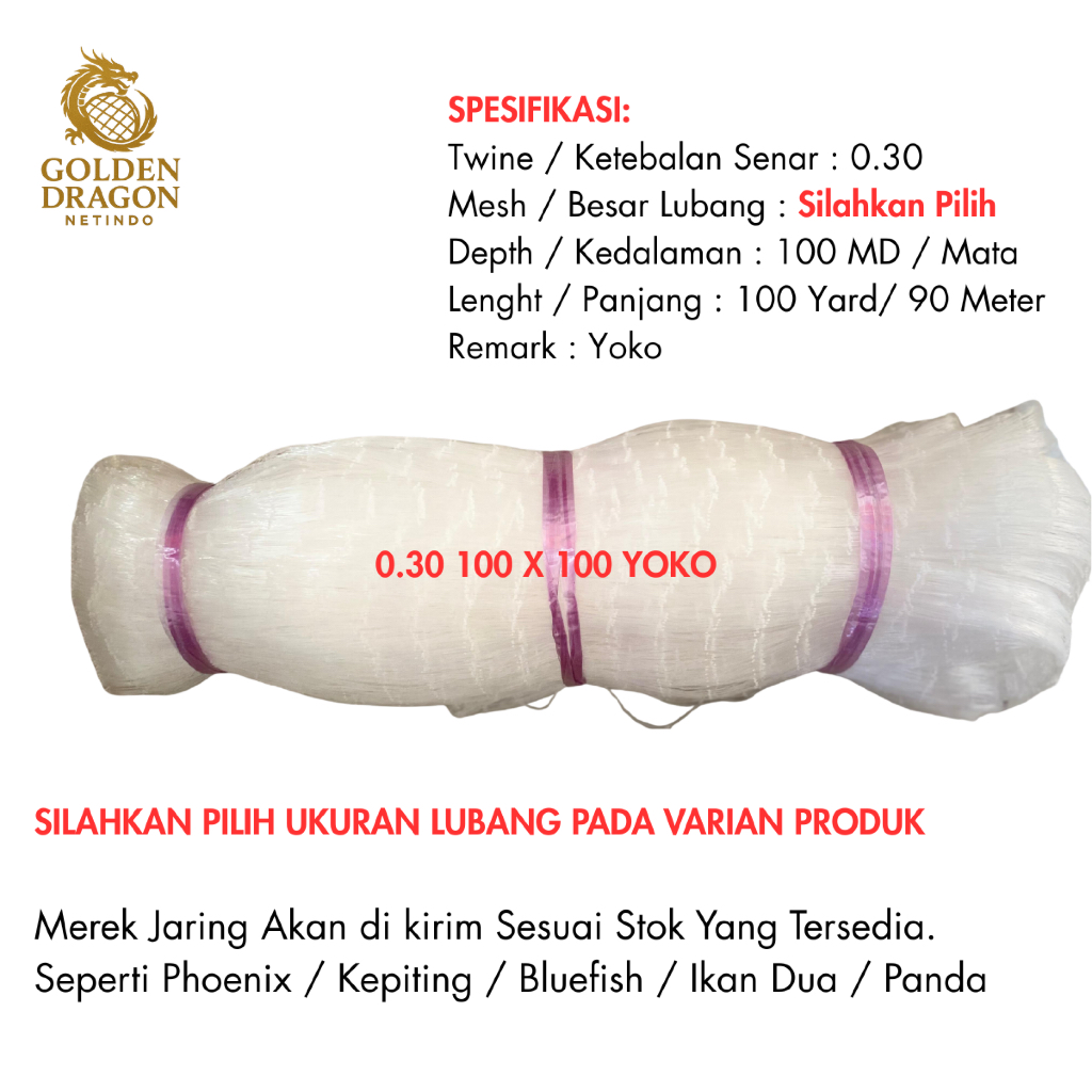 Jaring ikan senar 030 100x100 YOKO Mata Berdiri (Ukuran Lubang Pilih Di Variasi)