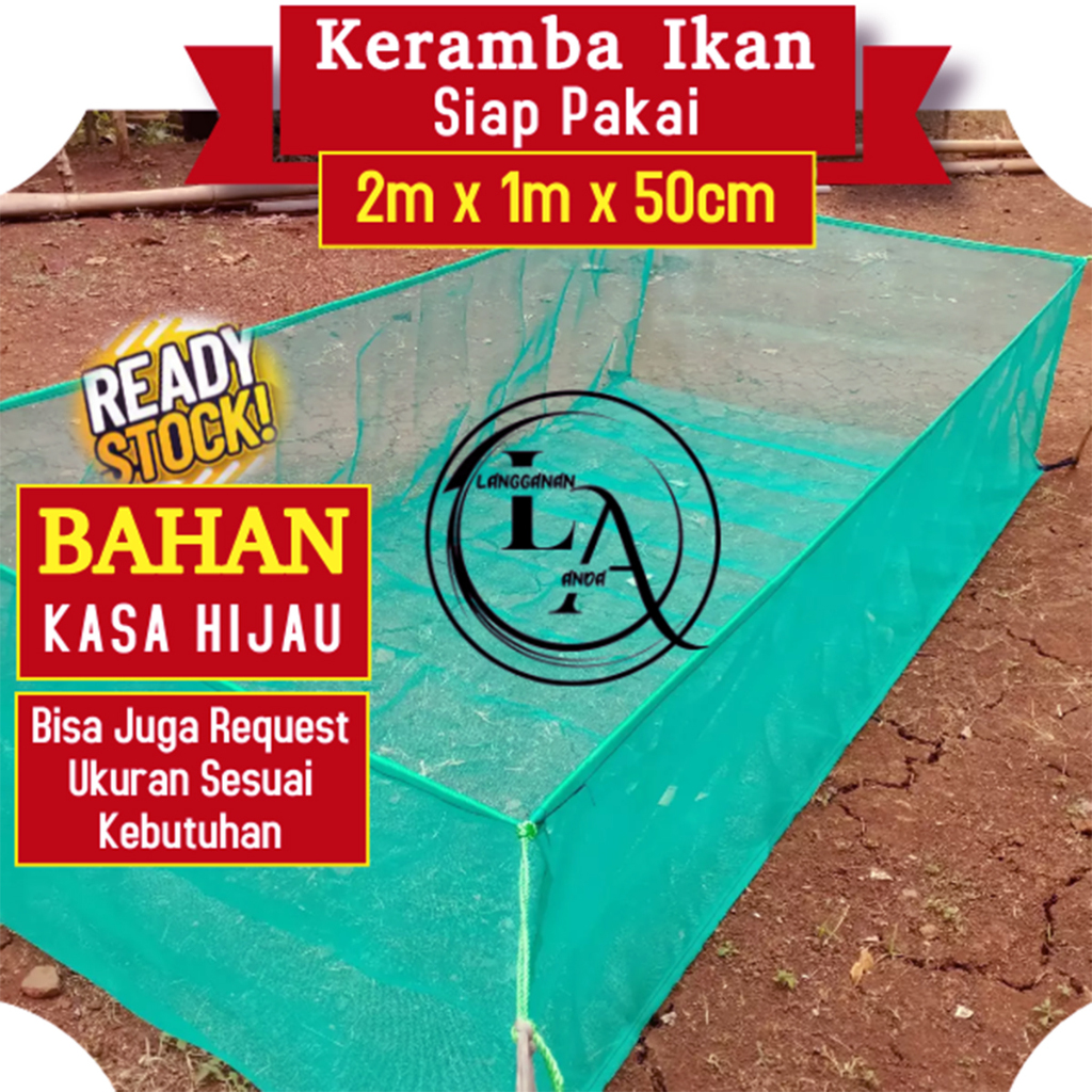 Jaring Ikan Keramba Apung Siap Pakai Bahan Kasa Hijau Waring Hitam Ukuran 2m x 1m x 50cm