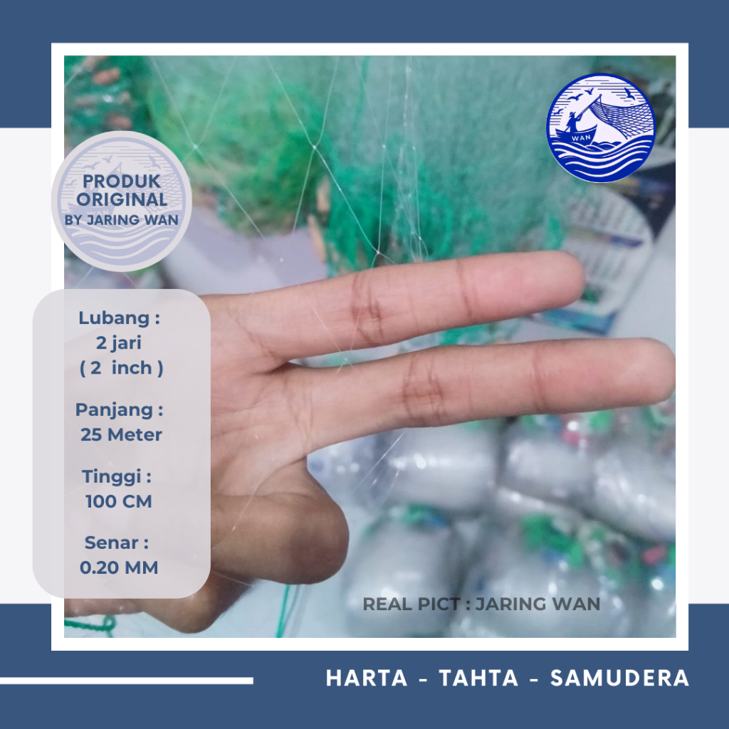Jaring Ikan panjang 25M lubang 2 Jari 3 Jari 4 Jari (SENAR TEBAL)