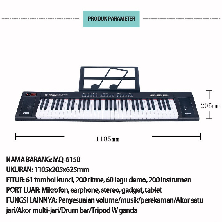 Miigo 61 Keys Keyboard Electronic Piano Lengkap Multifungsi Organ Elektronik Pemula Anak-Anak 6150