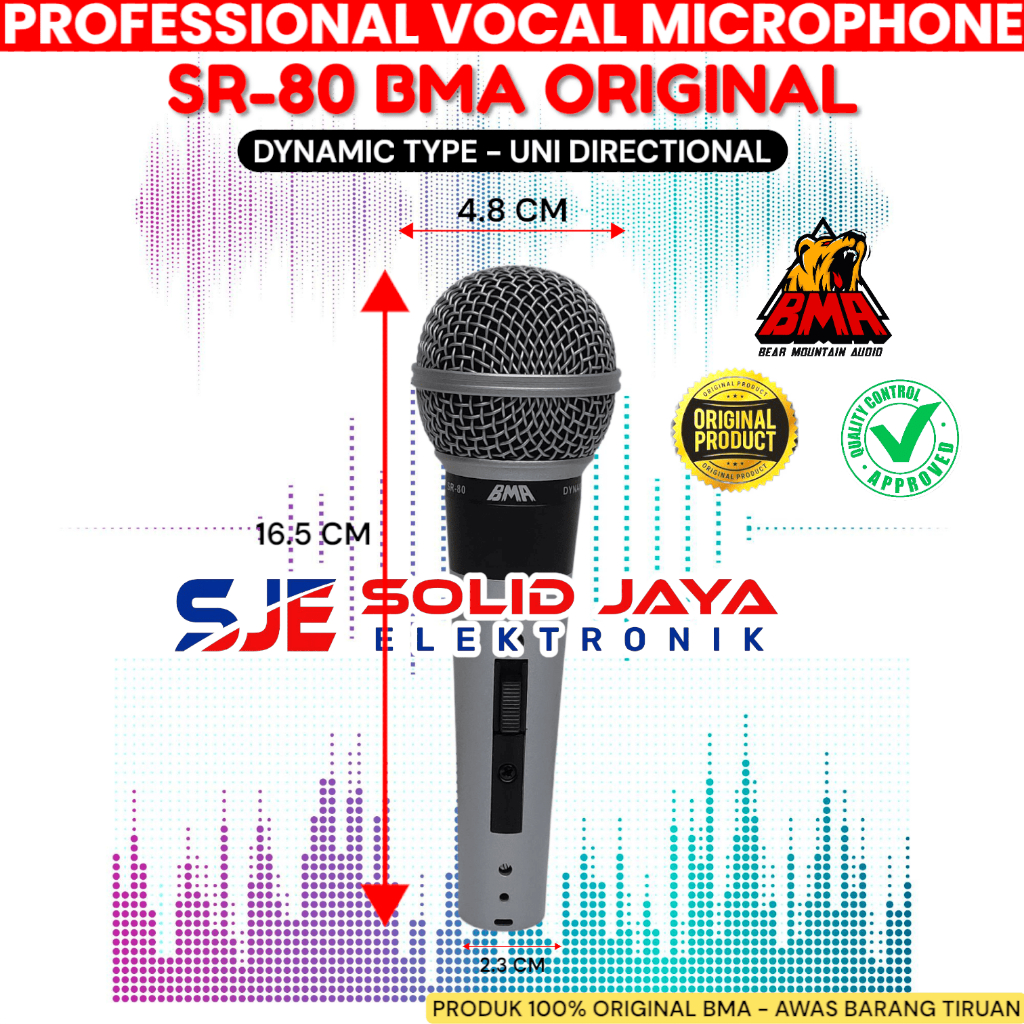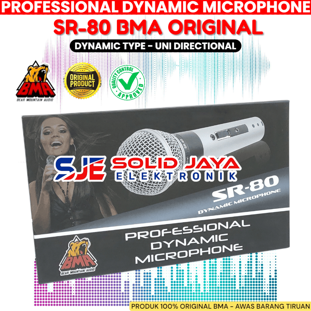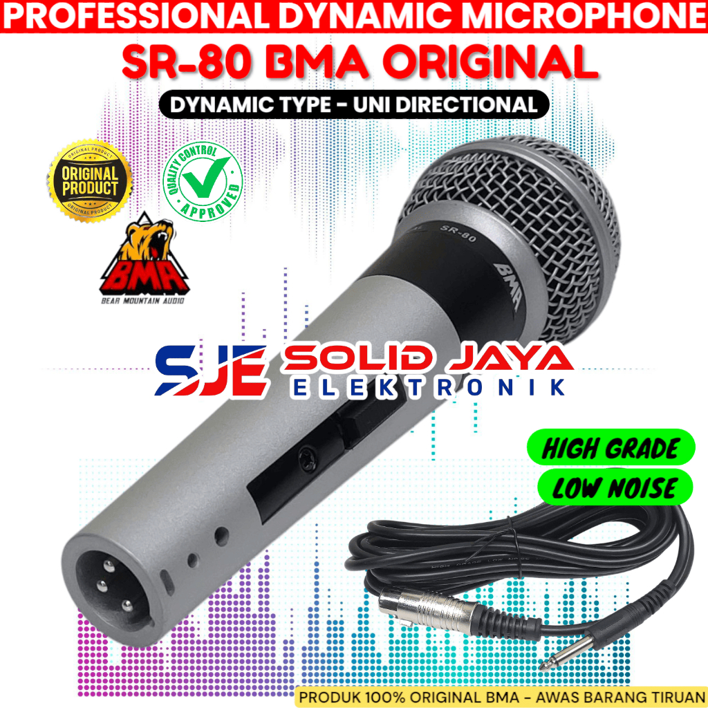 MIC MICROPHONE BMA SR-80 DYNAMIC KABEL SR80 SR 80 VOCAL VOKAL PROFESIONAL MIC MIK MIKROPON MIKROPHONE DINAMIC KARAOKE BMA ASLI ORI ORIGINAL