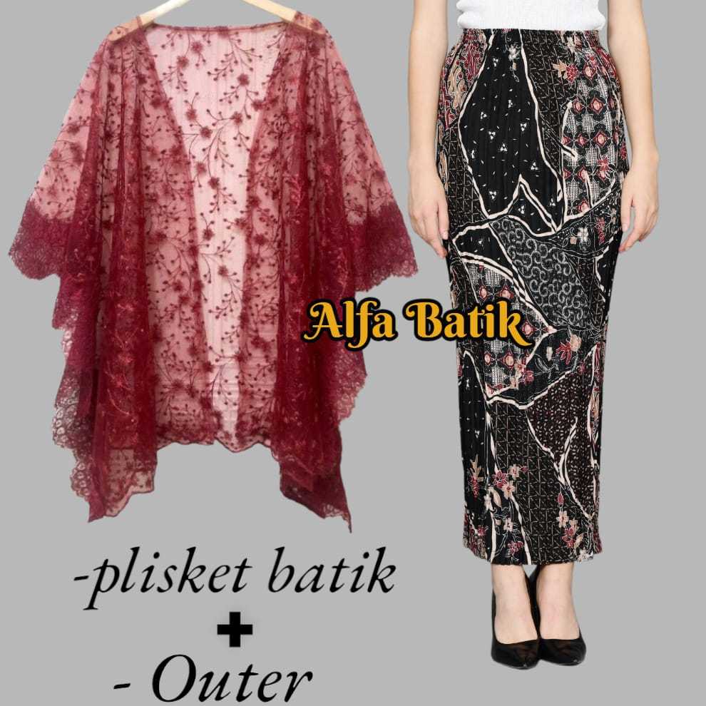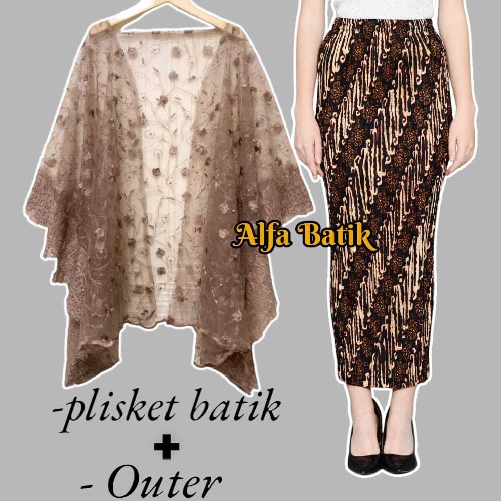 Set kebaya outer tille cantik mix plisket batik brukat kondangan wisuda bridesmaid modern mewah