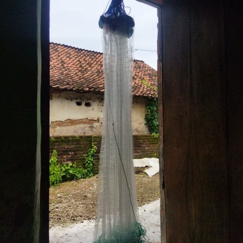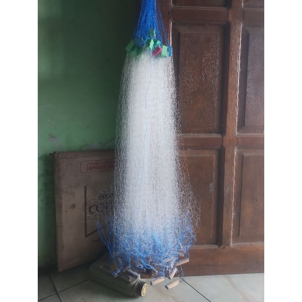 jaring ikan siap pakai ukuran 2 jari & 3 jari tinggi 1 meter panjang 50 meter 25 meter 10 senar 0.15
