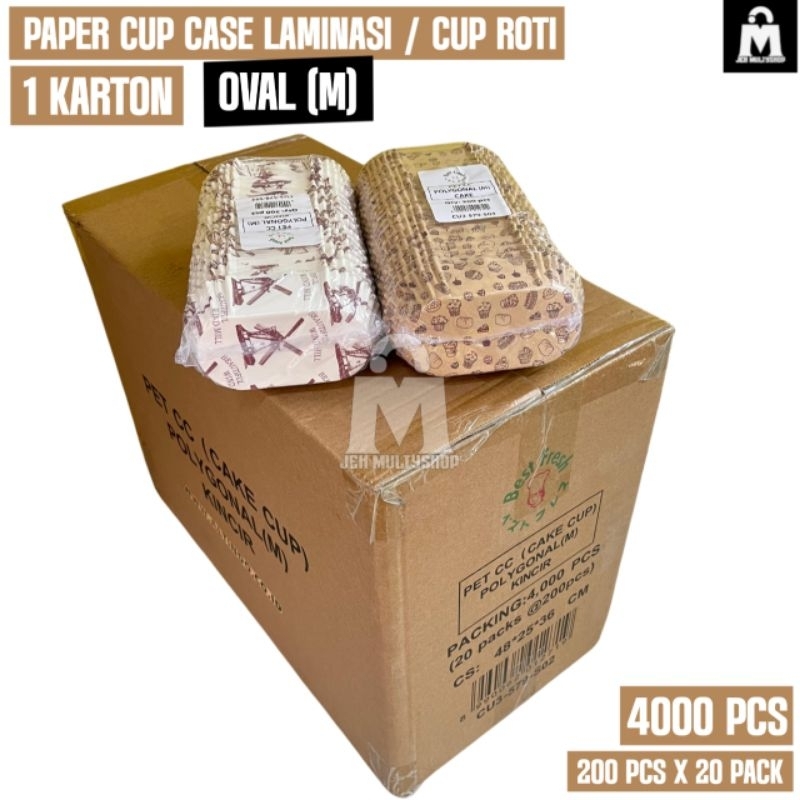 Paper cup case laminasi Oval M 1 karton isi 200 pcs x 20 pack / cup roti laminasi size M / harga grosir