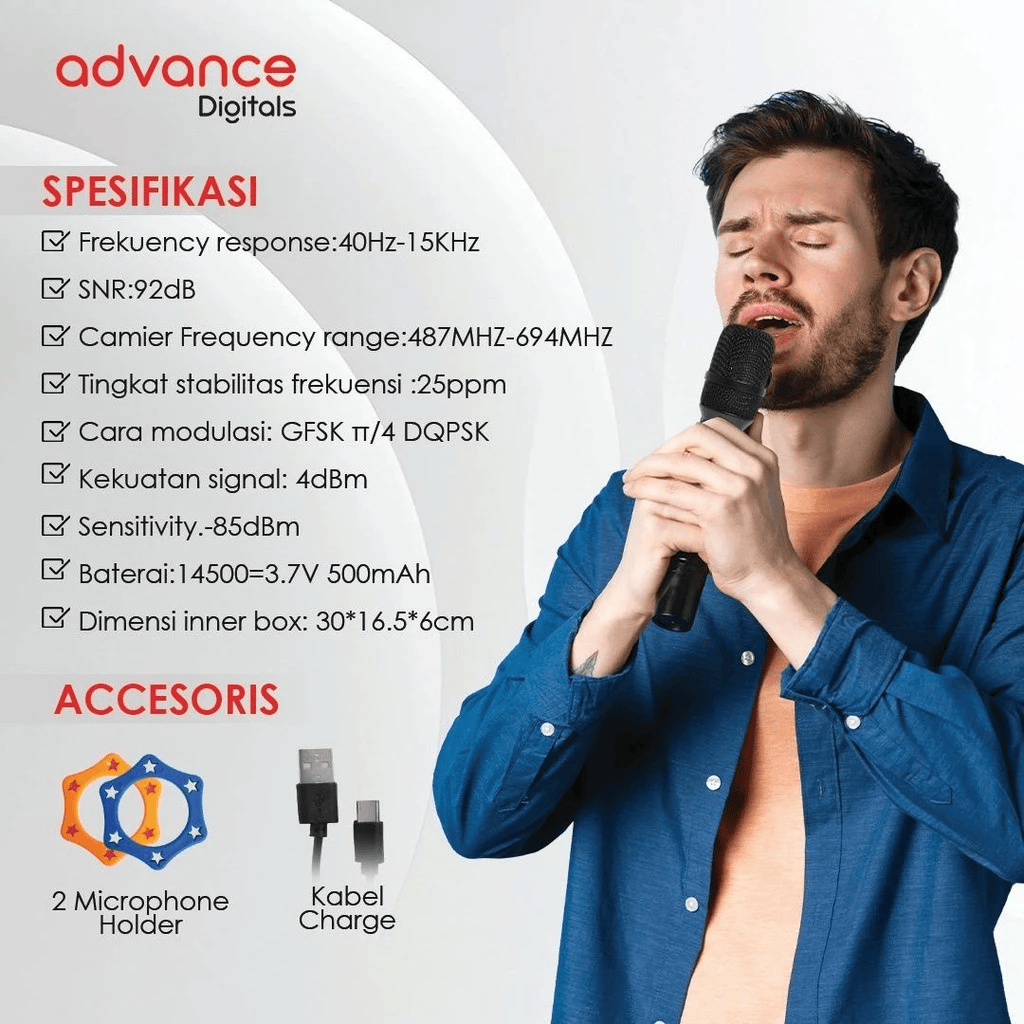Advance MIC210 Double Mic Wireless Recharger untuk Souncard atau Speaker Garansi Resmi 1 Tahun