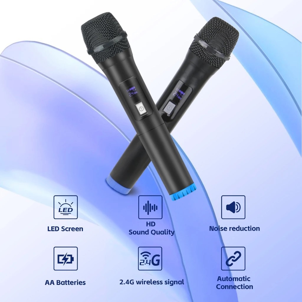 Microphone Wireless Mic Karaoke Tanpa Kabel MIC2 MIC1 Single Dual Digital LED Mic Karaoke GENGGAM