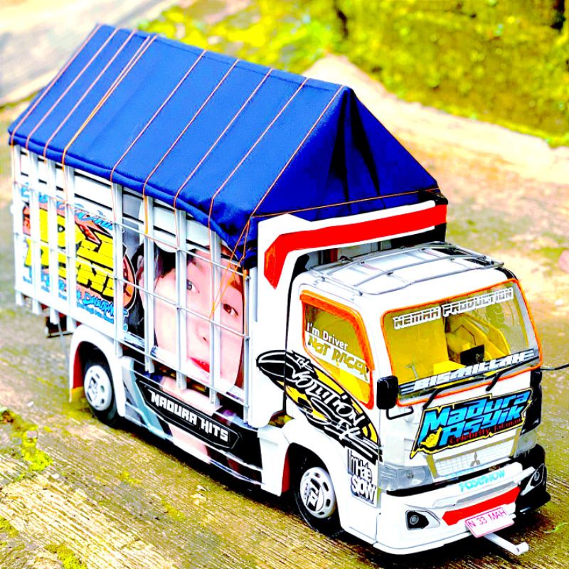 Miniatur Truk Oleng Canter Mbois Full Variasi Lampu Dan Terpal Terlaris