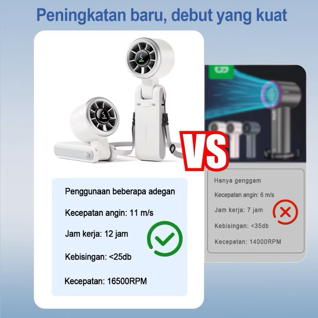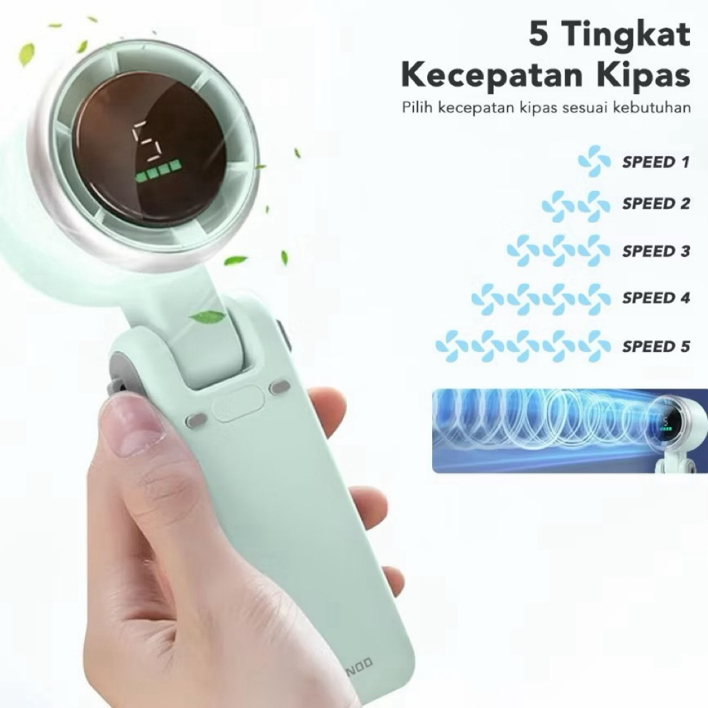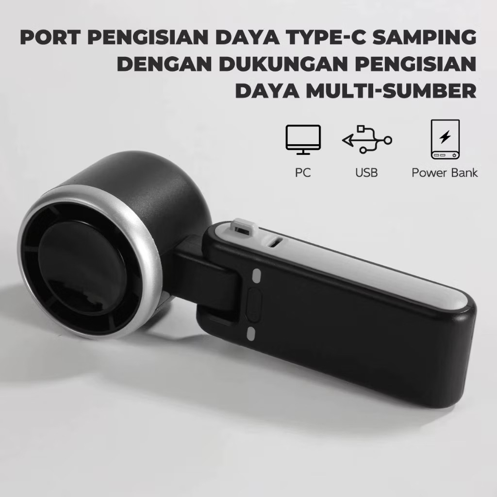 Kipas Mini Portabel Lipat Turbo 180° Adjustable - Desain Digital Lipat, Angin Super Kencang & Ultra Senyap untuk Kantor/door, Daya Tahan 24 Jam, Type-c Charging, Bisa Digantung di Leher