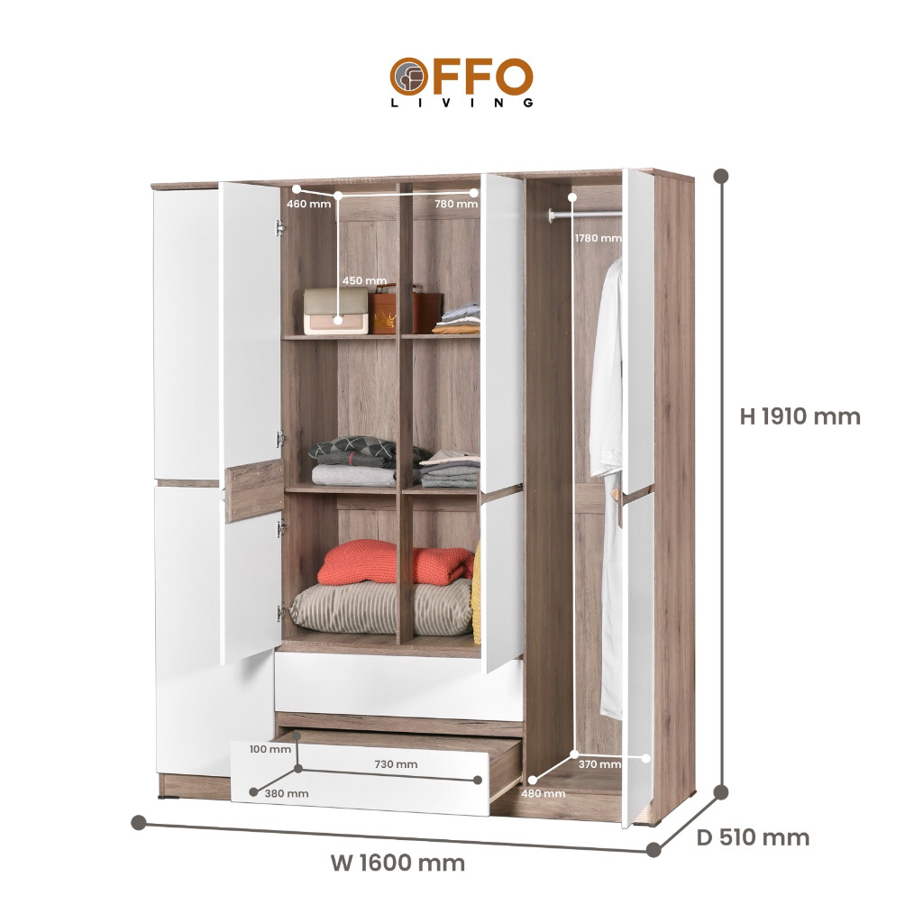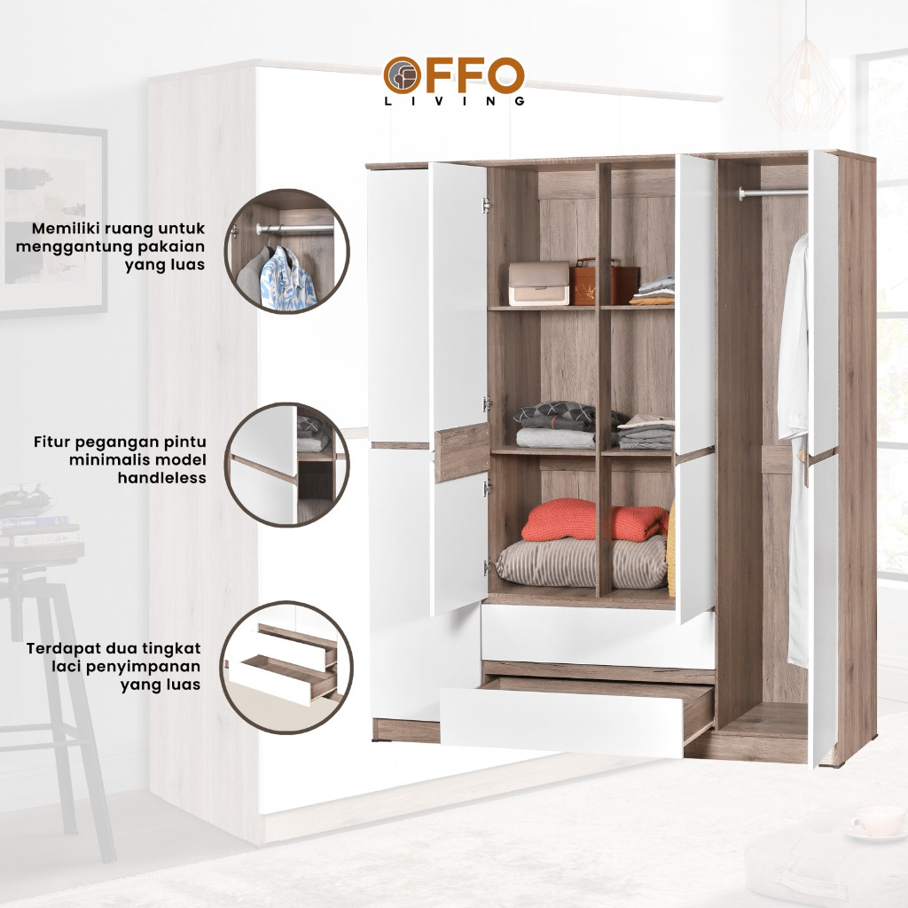 Offo Living - Lemari Pakaian Santorini 4 Pintu - Lemari Pakaian