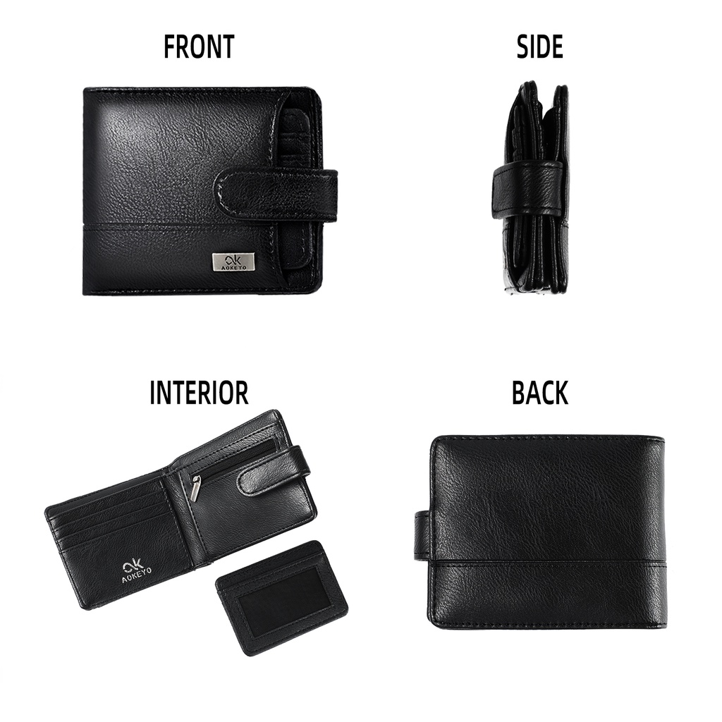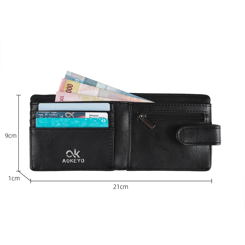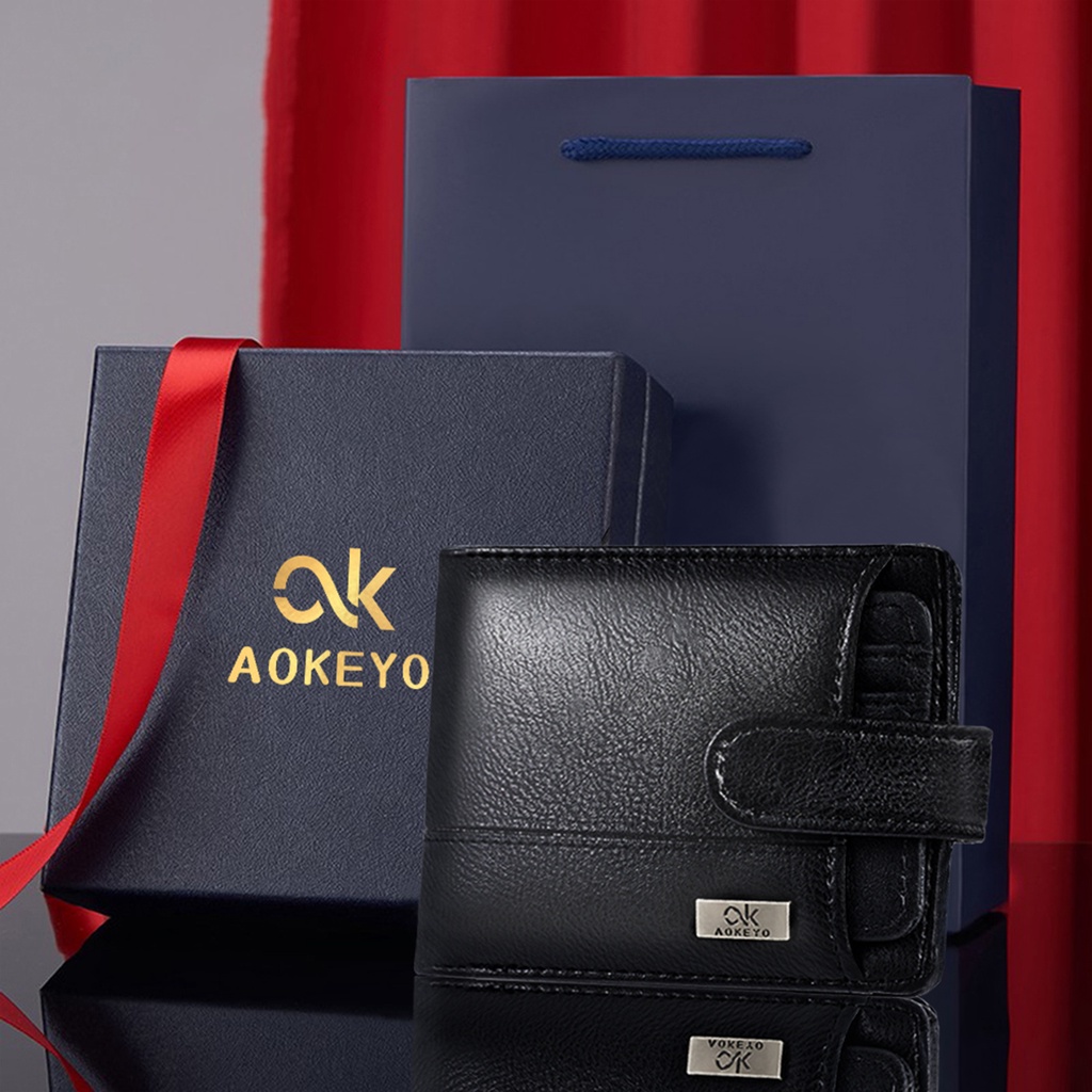 AOKEYO DOMPET PRIA/DOMPET KULIT PRIA/DOMPET LIPAT PRIA PENDEK 10 SLOT KARTU KOTAK HADIAH GRATIS