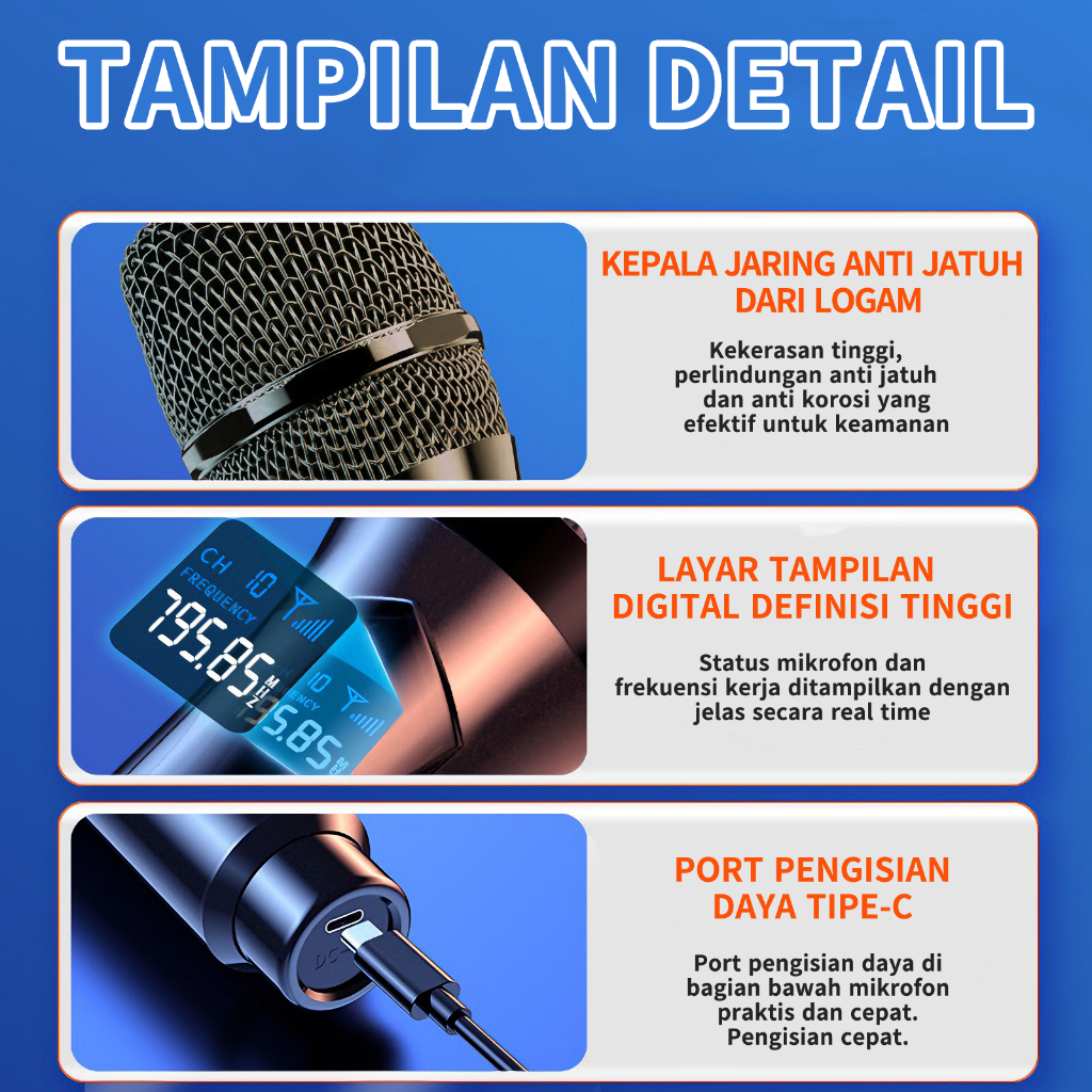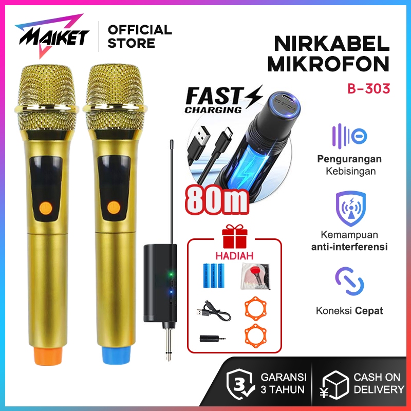 MAIKET Microphone Wireless Profesional Mic Karaoke gg00ldss 2 Mic 1 Mic Bisa di Charger Garansi 3 tahun