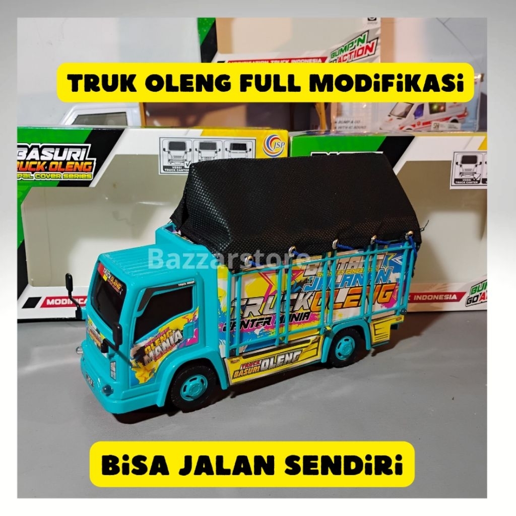 mainan truk oleng modifikasi terpal bisa jalan sendiri lampu nyala dan musik telolet nyala, miniatur truk oleng modifikasi, mobil-mobilan truk oleng