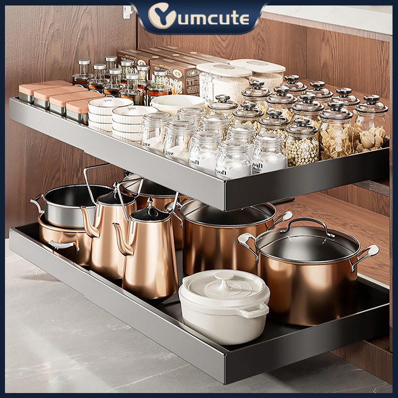 Lemari Dapur Keranjang Penyimpanan Yang Dapat Diperluas Keranjang Penyimpanan Bumbu Rel Botol Tarik Rak Tanpa Pukulan