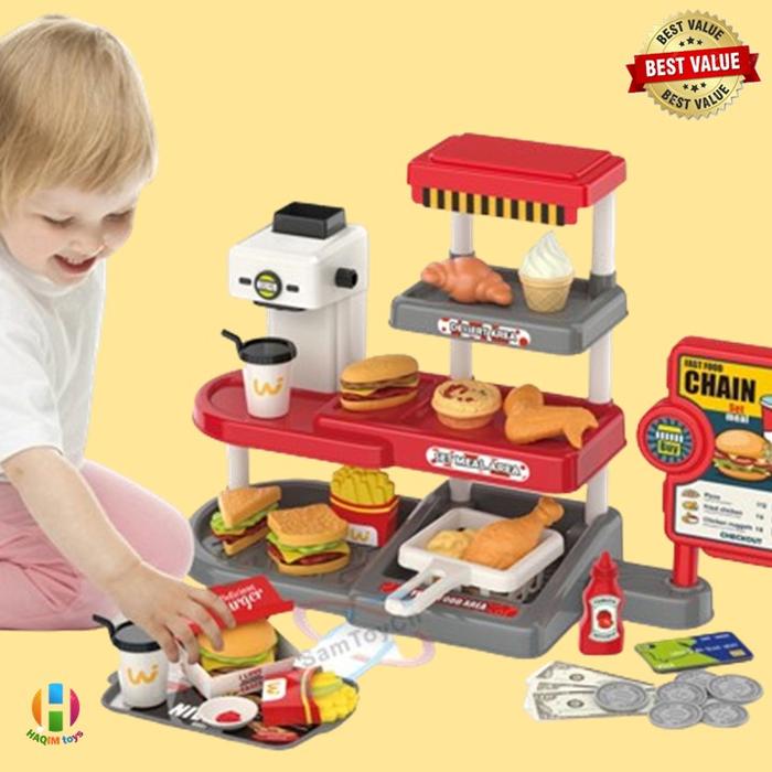 MAINAN ANAK PEREMPUAN EDUKASI MAINAN MASAK MASAKAN ANAK MAINAN KASIR KASIRAN ANAK MAINAN JUALAN FAST FOOD H120 - MERAH