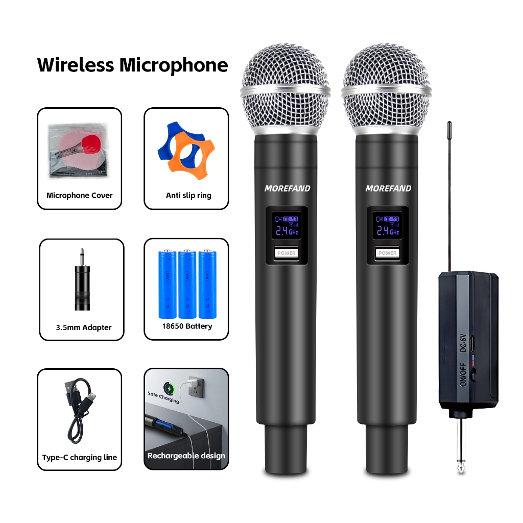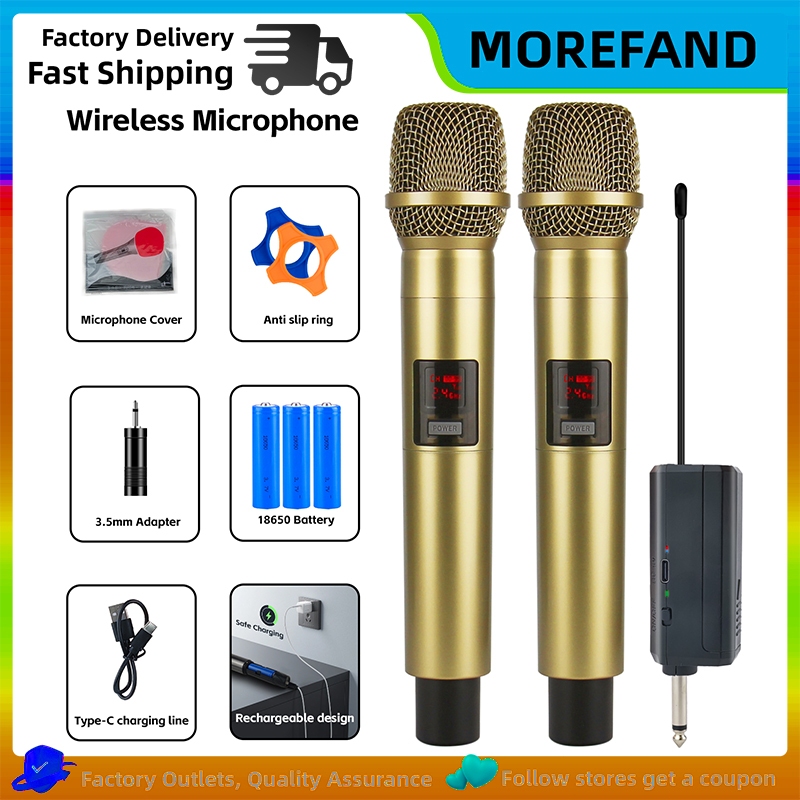 Professional Wireless Microphone Mikrofon nirkabel Rechargeable mic For Videoke Mic UHF Pro Microphone Bisa Dicharger Frekuensi/Digital Mikrofon Bluetooth Karaoke