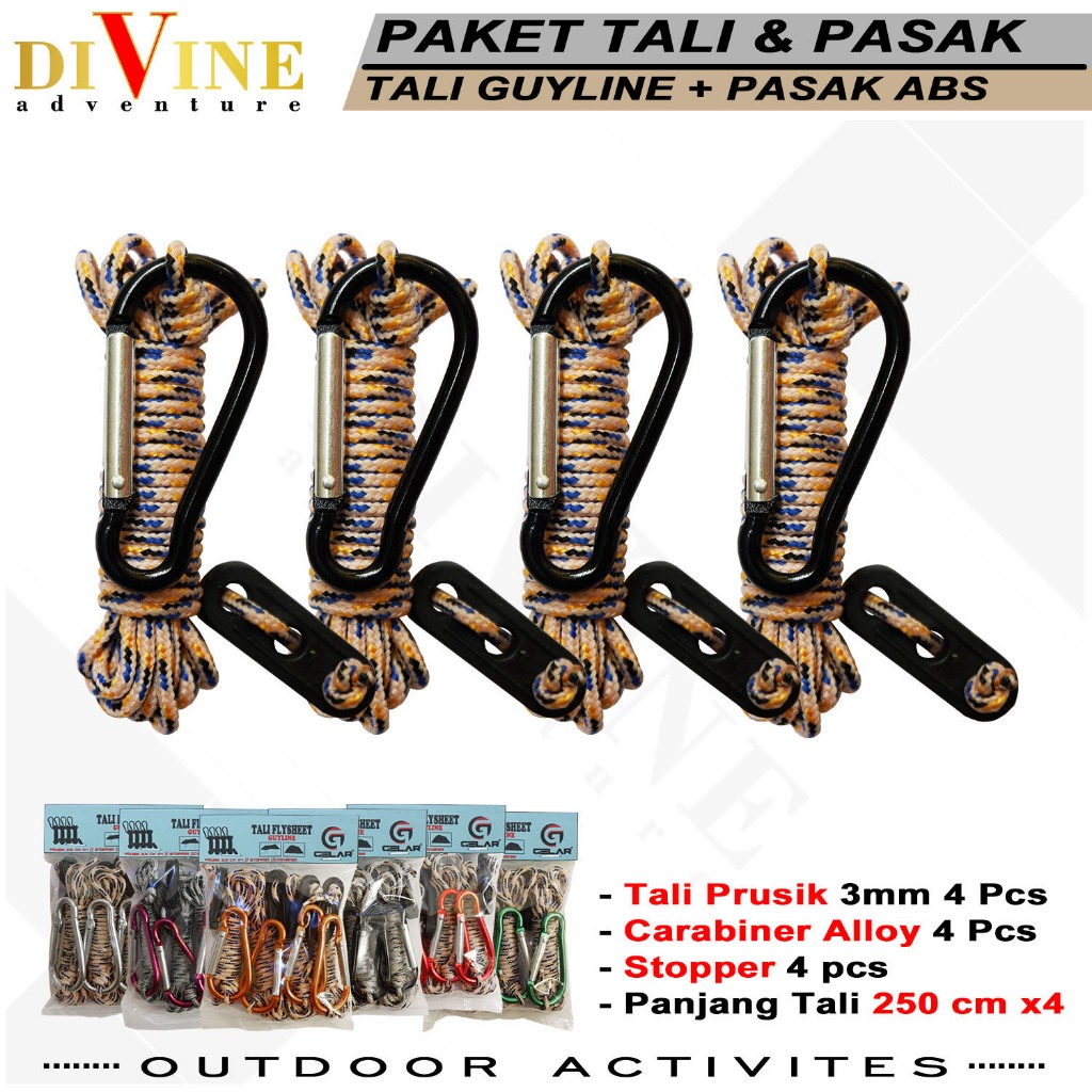 paketan pasak tali guyline paket 6 pasak ABS dan 4 tali flysheet tali tenda pasak tenda set serbaguna alat Camping