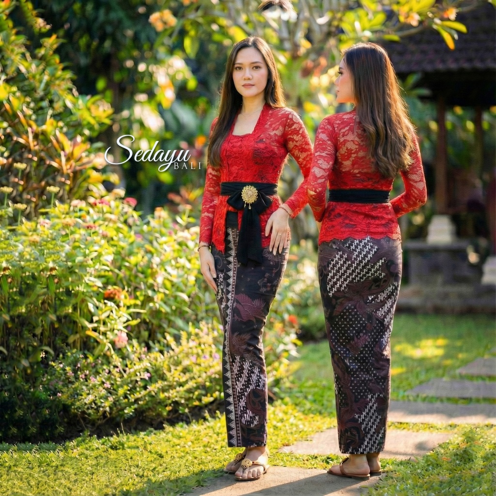 One set kebaya sofia lengan panjang set Selendang sifon | Setelan kebaya Brokat | Pakaian atasan wanita tradisional