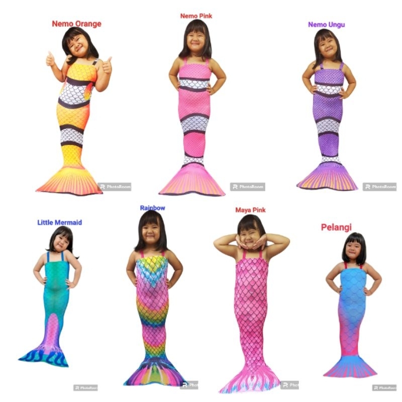 Glosir Baju Renang Mermaid Motif NEMO Pink, Ungu, Rainbow dan Maya Pink