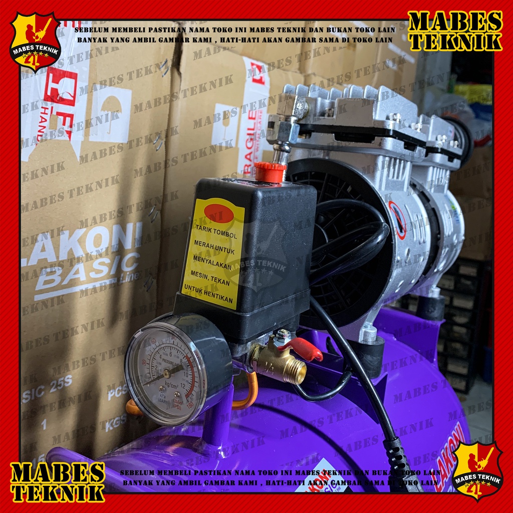 Lakoni Basic 25S 3/4HP / 0,75- Kompresor Angin Listrik / Udara - Oiless / Tanpa Oli - Tanki 24 Liter