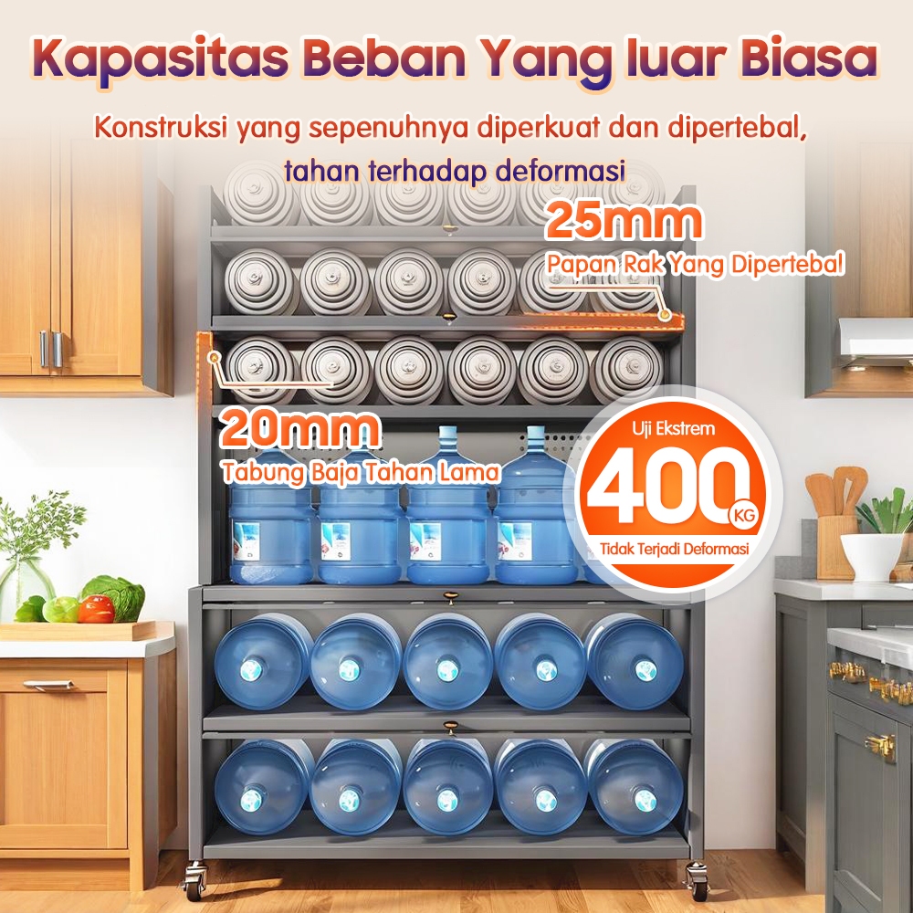 Lemari Dapur Minimalis Rak Dapur Serbaguna Rak Penyimpanan Dapur Rak Piring Oven Microwave Dengan Roda Pintu