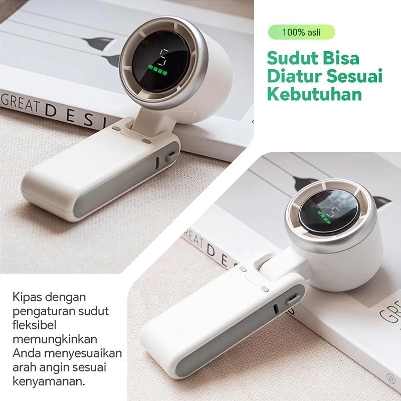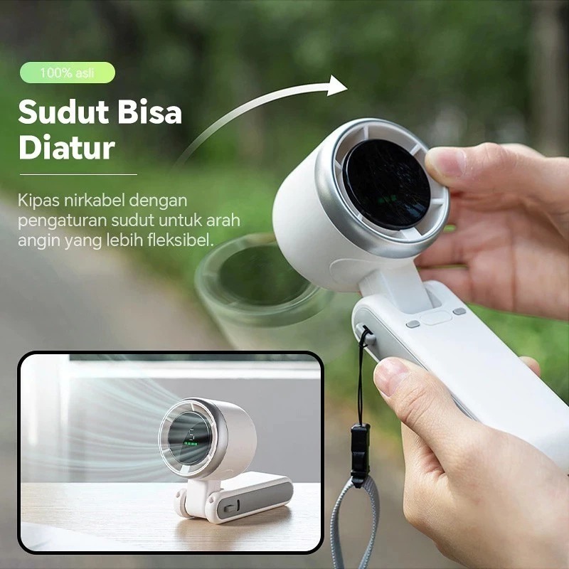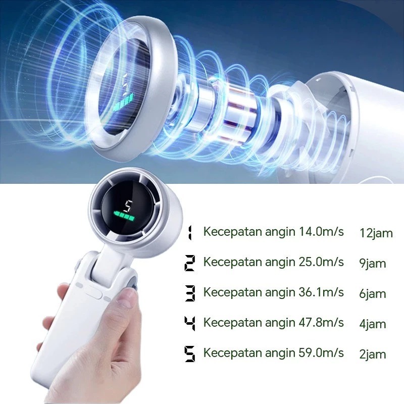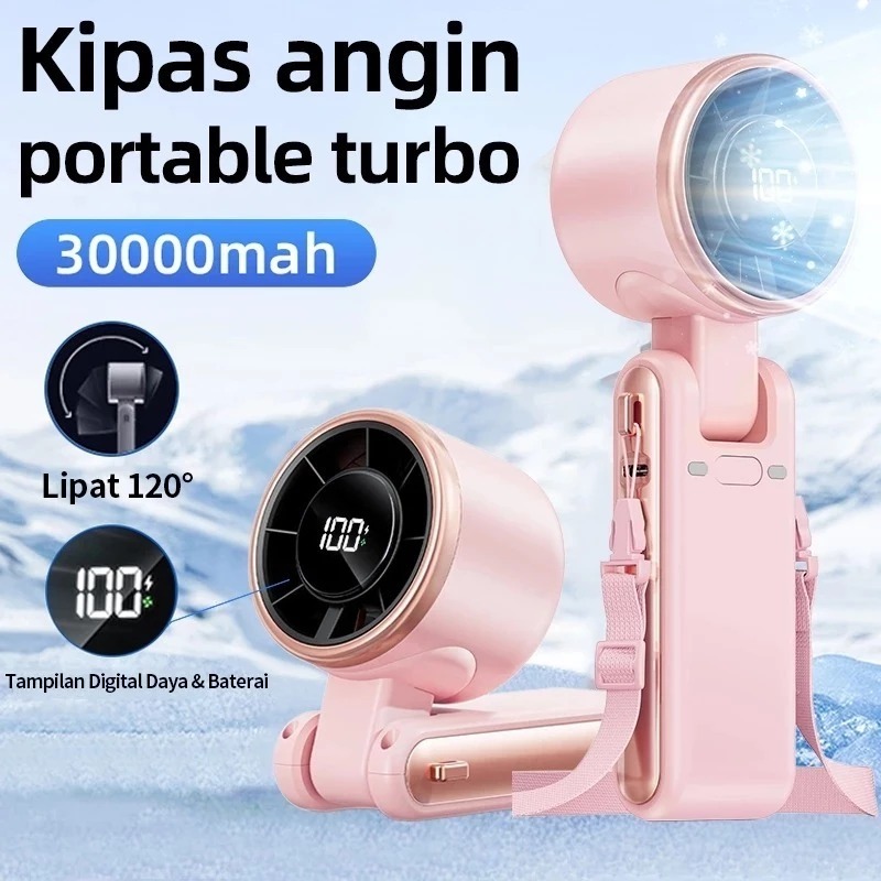 (M&T) Kipas Angin Mini Portable Kipas Genggam Turbo Free Tali Bisa Dilipat Kapasitas Batrai 30000mAh Tahan 12 Jam