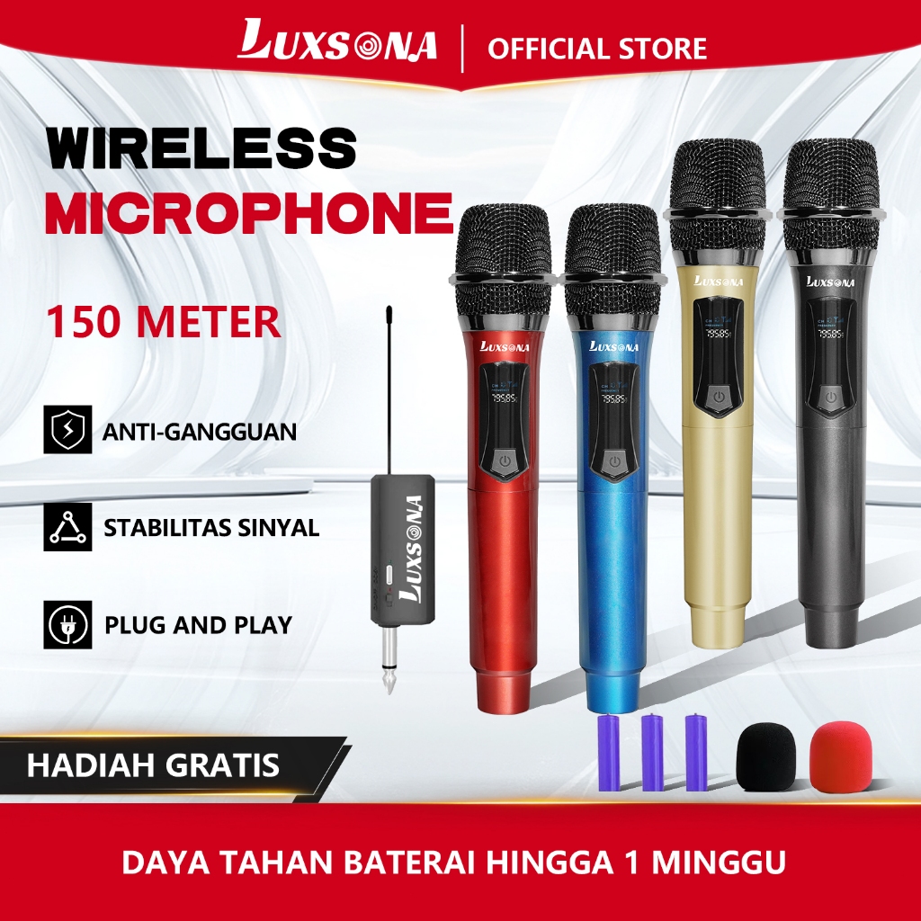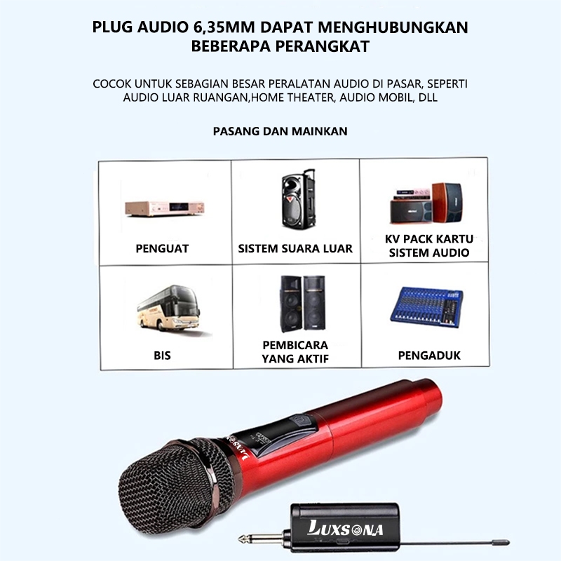 LUXSONA Mikrofon karaoke ganda/mikrofon nirkabel/mikrofon dinamis nirkabel murah yang dapat diisi ulang/mikrofon karaoke genggam dengan sistem penerima