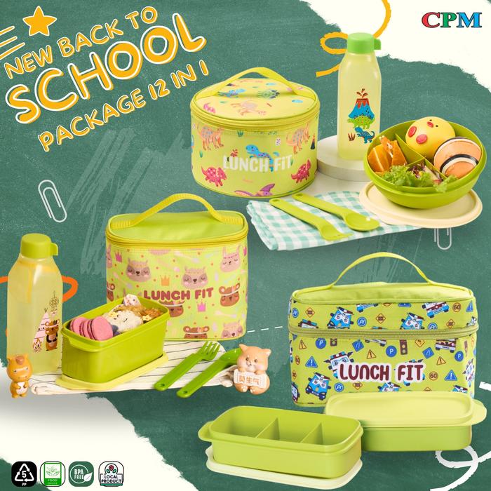 CPM ALL NEW BACK TO SCHOOL PACKAGE 12 IN 1 /TAS BEKAL MAKAN ANAK SET LENGKAP (NEW JENNIE ,NEW ASTRO,VIERA ) GARPU PLASTIK BEST SELLING - UNGU