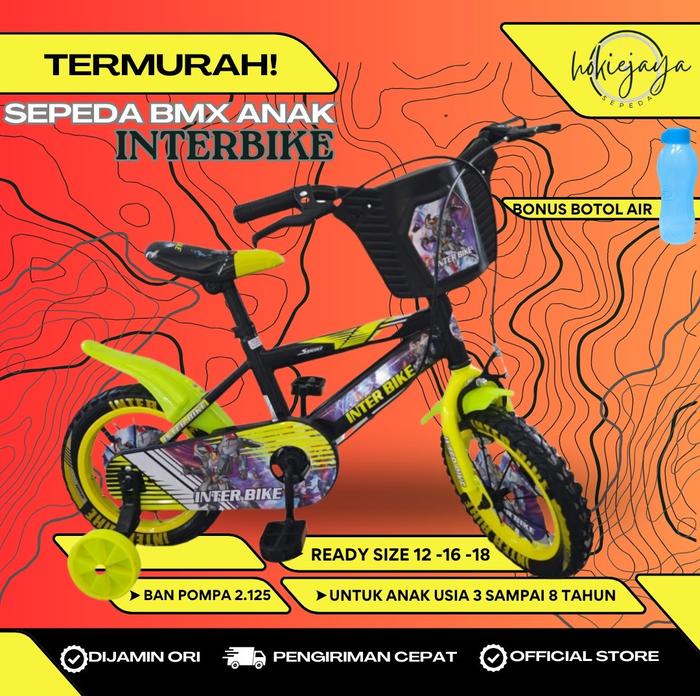 Sepeda Anak BMX INTERBIKE Frame besi Ban POMPA (usia 3-8 TAHUN ) BONUS BOTOL AIR - INTER 142 BLUE 18 usia 6-8thn