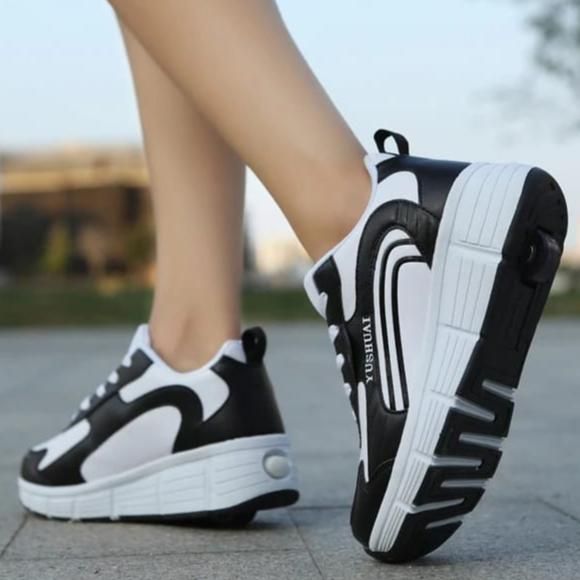 Sepatu roda anak sneaker olahraga kasual Roda Single - Hitam 35