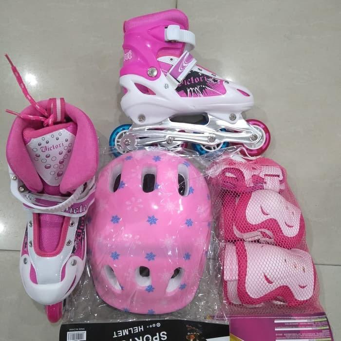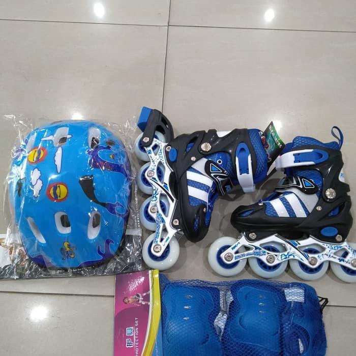 Sepatu roda inline skate 2 in 1 +HELM+deker satu set - Biru full set S