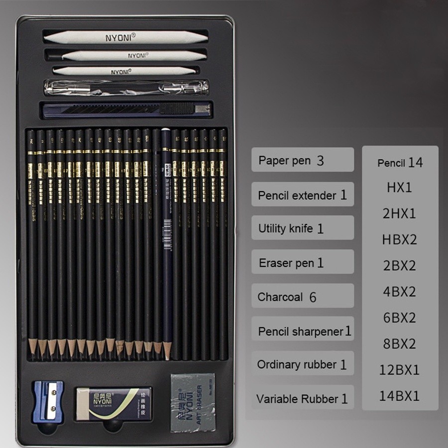 KONGDO NYONI Drawing Pencil Gambar Set 29pcs Metal Tin Box Pensil Gambar Lukis Sketsa Lengkap Paket