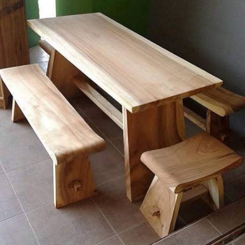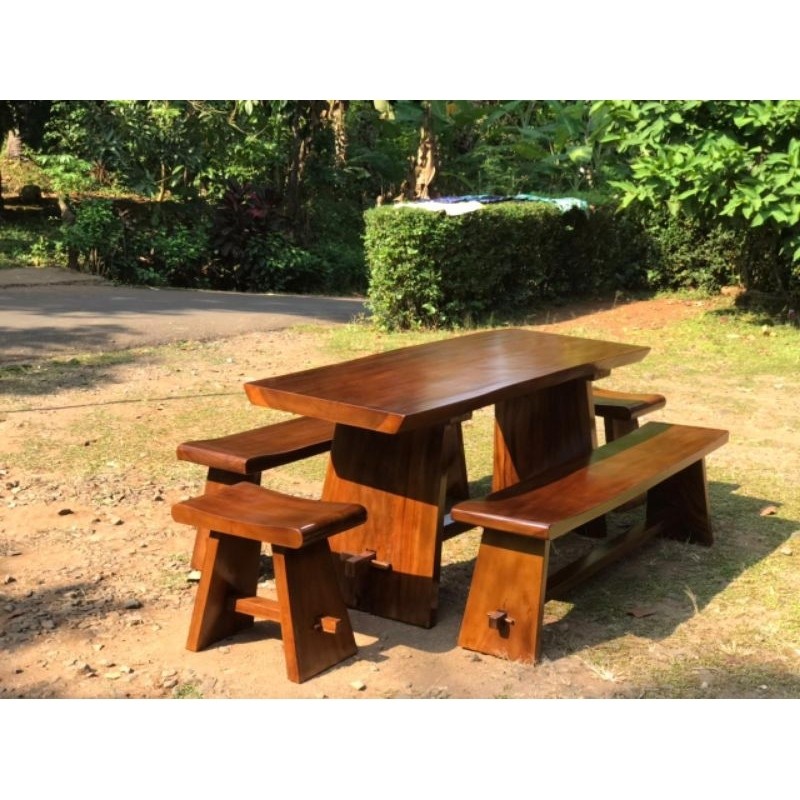 meja makan minimalis kayu solid tanpa sambungan, meja makan kayu trembesi utuh