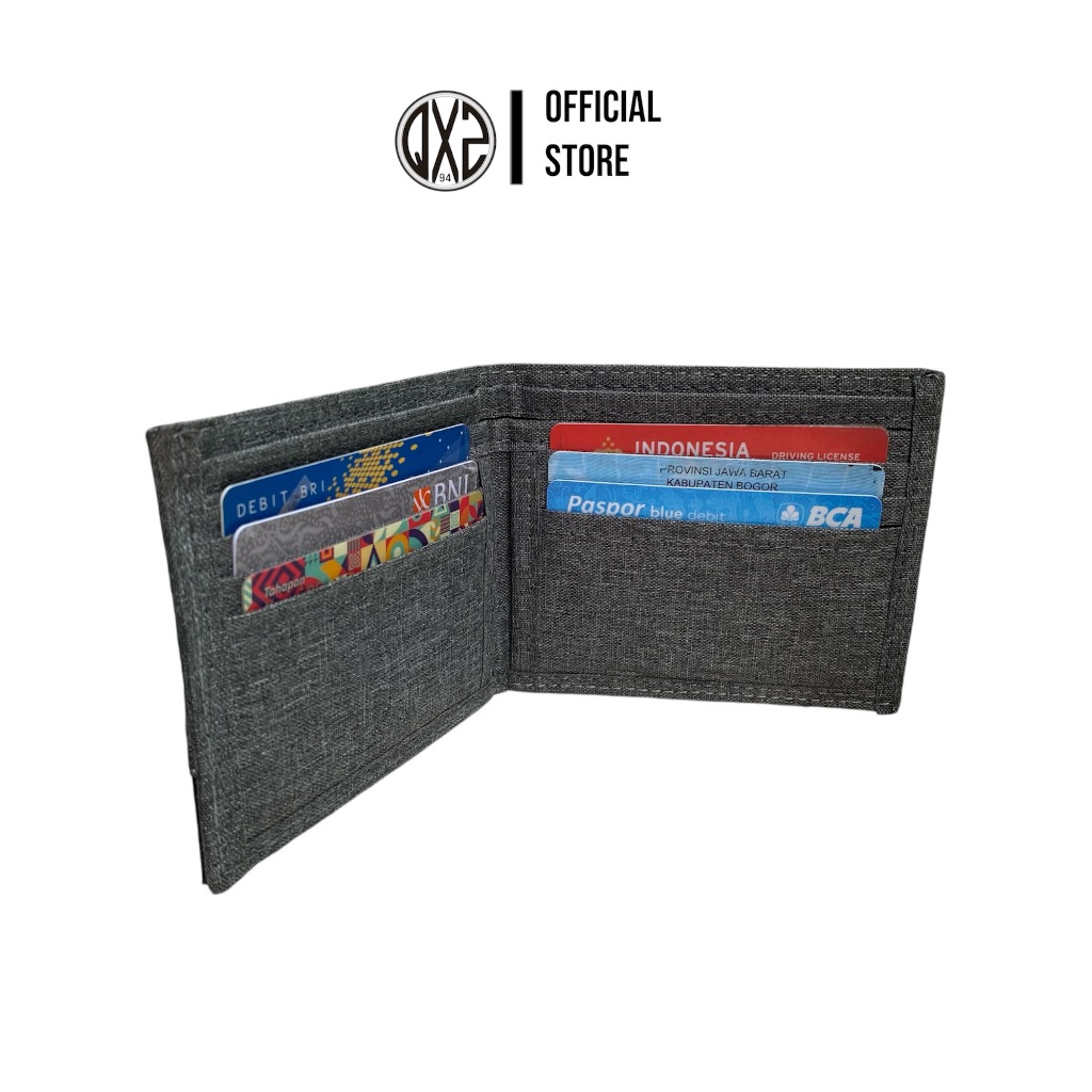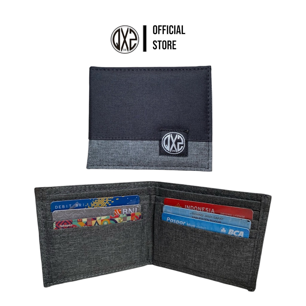 QXZ94 DOMPET PRIA KULIT KANVAS PENDEK LIPAT KARTU POLOS KOMBINASI HITAM ABU DPTL-KV02