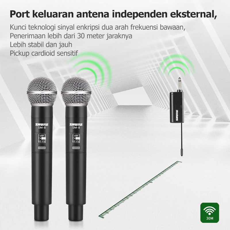 mic wireless original SM-8,wireless mikrofon,mik karaoke,wireless microphone,mic karaoke suara jernih,vocal suara terbaik Dual handheld