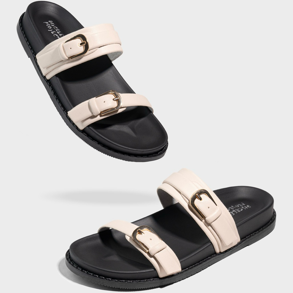 Discreet Project - Sandal Slip On EST 122 Hitam dan Cream