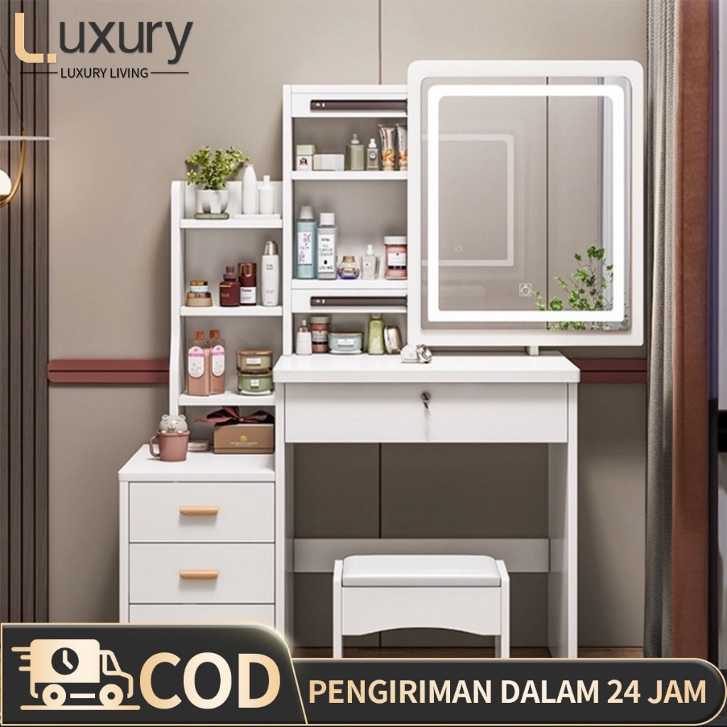 Ll Meja Rias Putih Lampu Led / Meja Rias Kaca Sliding Minimalis /Furniture Meja Rias / Meja Kosmetik